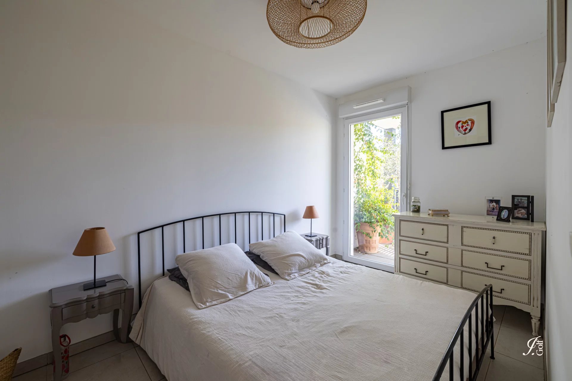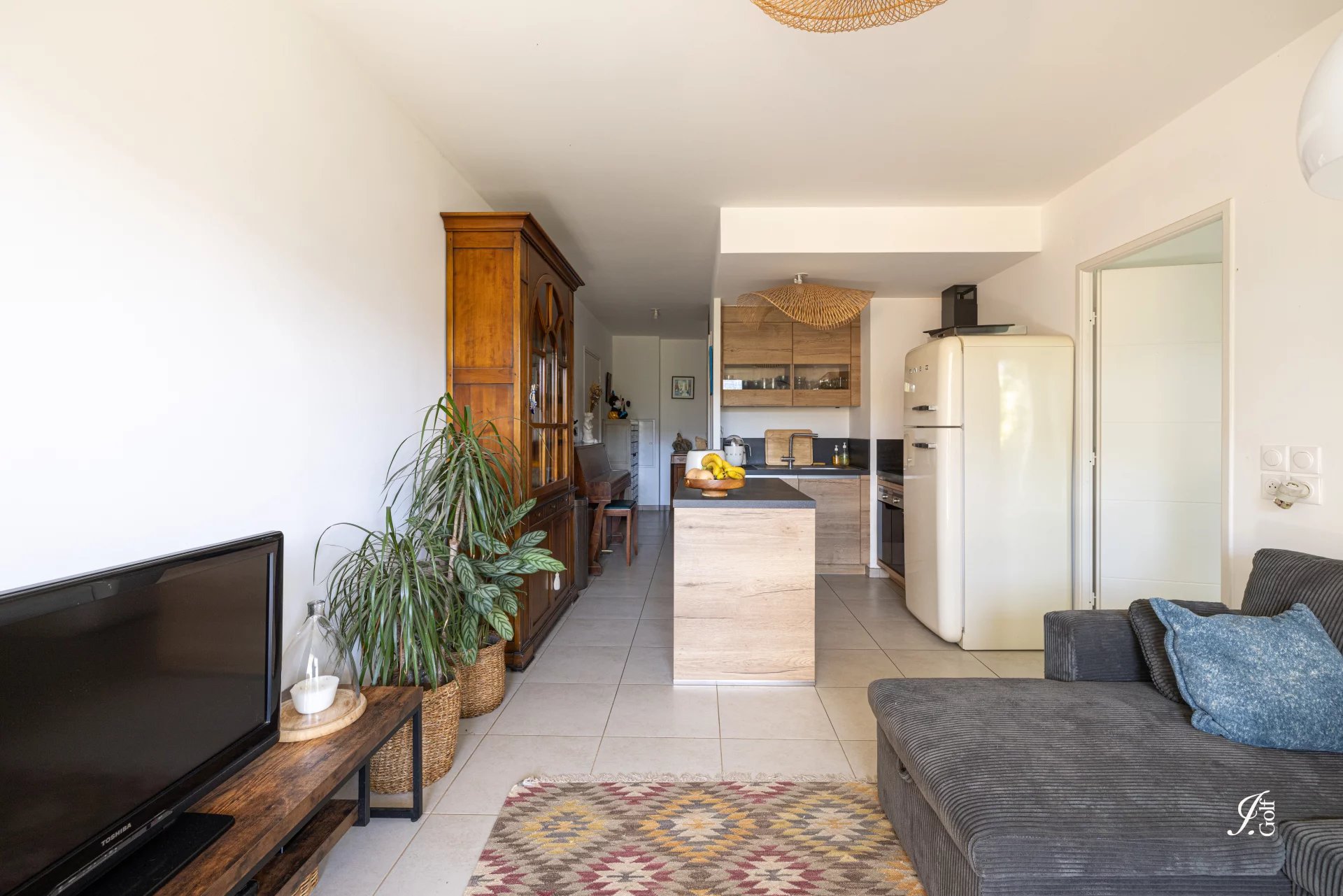 un bel appartement traversant T4 de 73m², situé dans une résidence récente, sécurisée et parfaitement entretenue, à proximité immédiate de toutes les commodités (accès autoroutiers, commerces, écoles, collège, lycée, etc.). Agréablement agencé et offrant de belles prestations, il se compose d’un espace de vie lumineux avec cuisine américaine entièrement équipée, d’une suite parentale avec placards, salle d’eau à l’italienne et wc, l’ensemble s’ouvrant sur une large terrasse exposée plein sud. Un dégagement dessert deux belles chambres avec rangements intégrés, donnant sur une terrasse privative, ainsi qu’une vaste salle de bains et des WC indépendants. Un box double en sous-sol sécurisé complète ce bien, et le stationnement libre est possible au sein de la résidence.