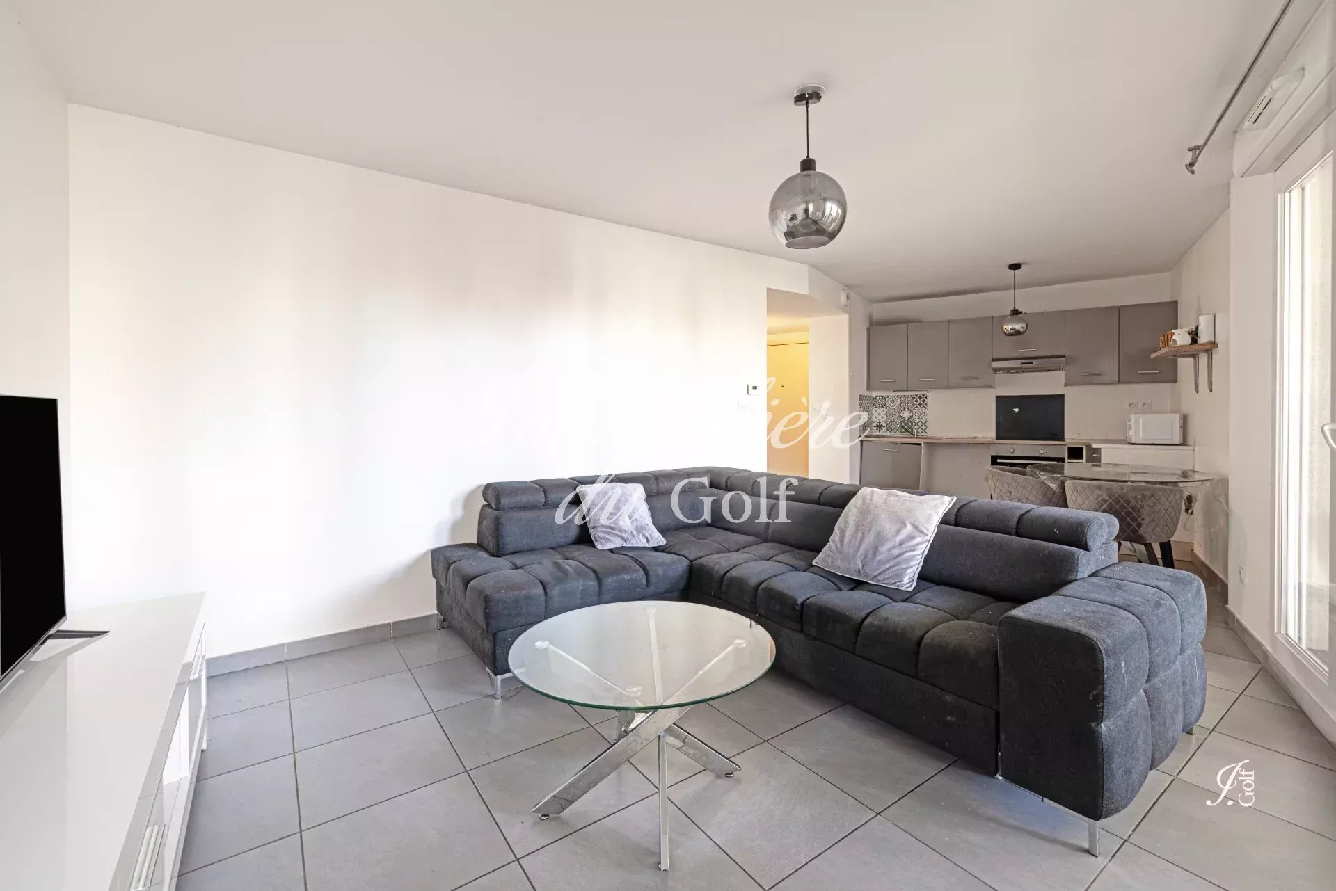 L’Immobilière du Golf vous présente : LA PARENTHÈSE, un appartement T3 de 55m2, niché au cœur d’une résidence sécurisée, au calme absolu, dans l’un des secteurs les plus recherchés du 9ᵉ arrondissement. Dès l’entrée, les volumes séduisent par leur équilibre et leur harmonie. La pièce de vie de 22m², intégre un séjour avec cuisine ouverte, offre un espace convivial et lumineux, pensé aussi bien pour le confort du quotidien que pour les moments partagés. Elle se prolonge naturellement sur une belle terrasse de plus de 12m², bénéficiant d’une exposition idéale, permettant de profiter pleinement de l’extérieur tout au long de la saison estivale. Le coin nuit, composé de deux chambres, est orienté côté cœur de résidence, un calme appréciable et une atmosphère sereine. Un parking couvert double est proposé en sus au prix de 25 000 €. L’ensemble propose un cadre de vie serein, alliant sécurité et qualité résidentielle, à proximité immédiate des commodités, des écoles et des axes principaux. Idéal pour une résidence principale comme pour un investissement locatif.