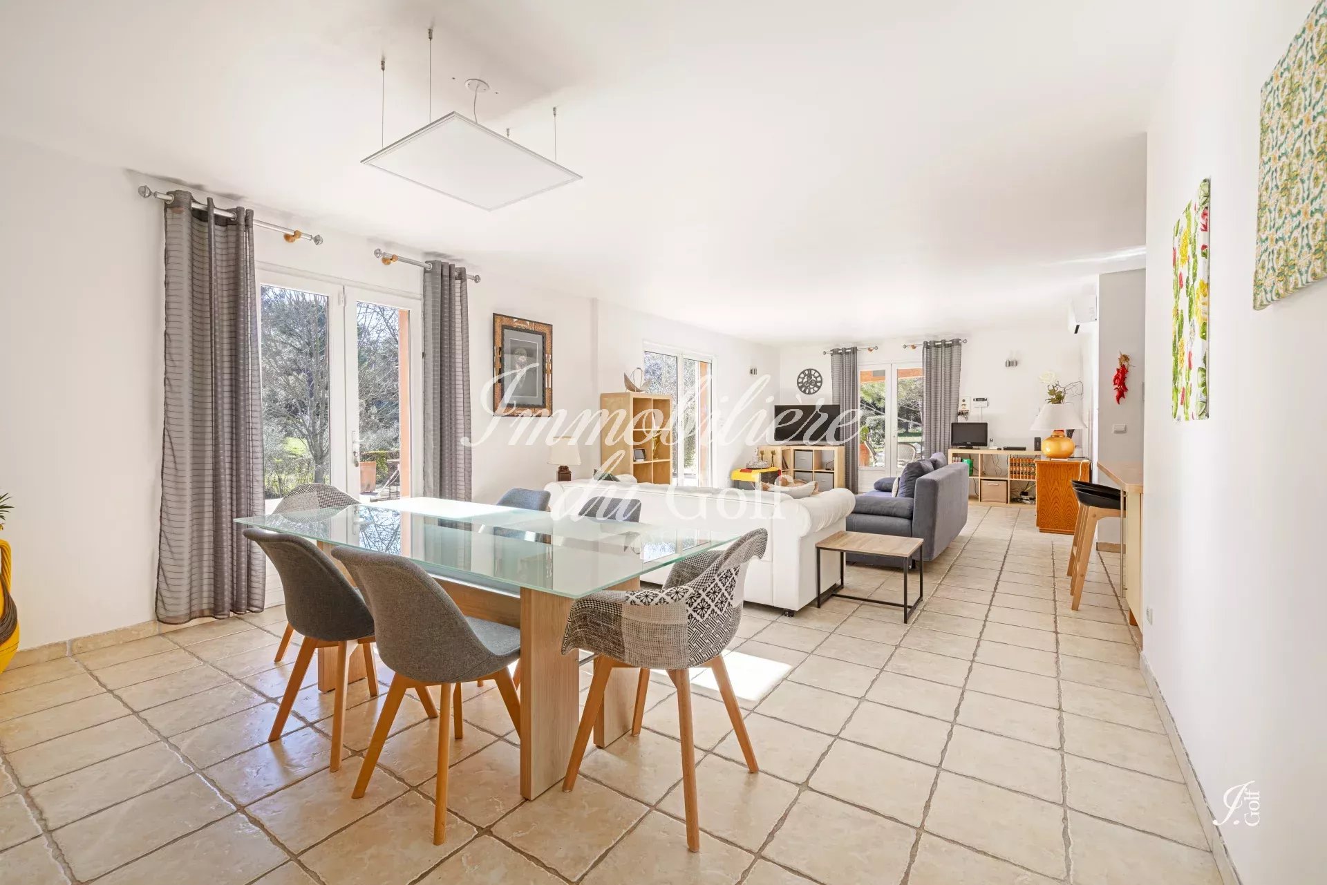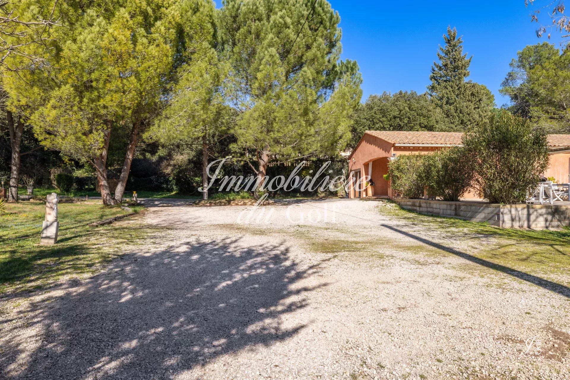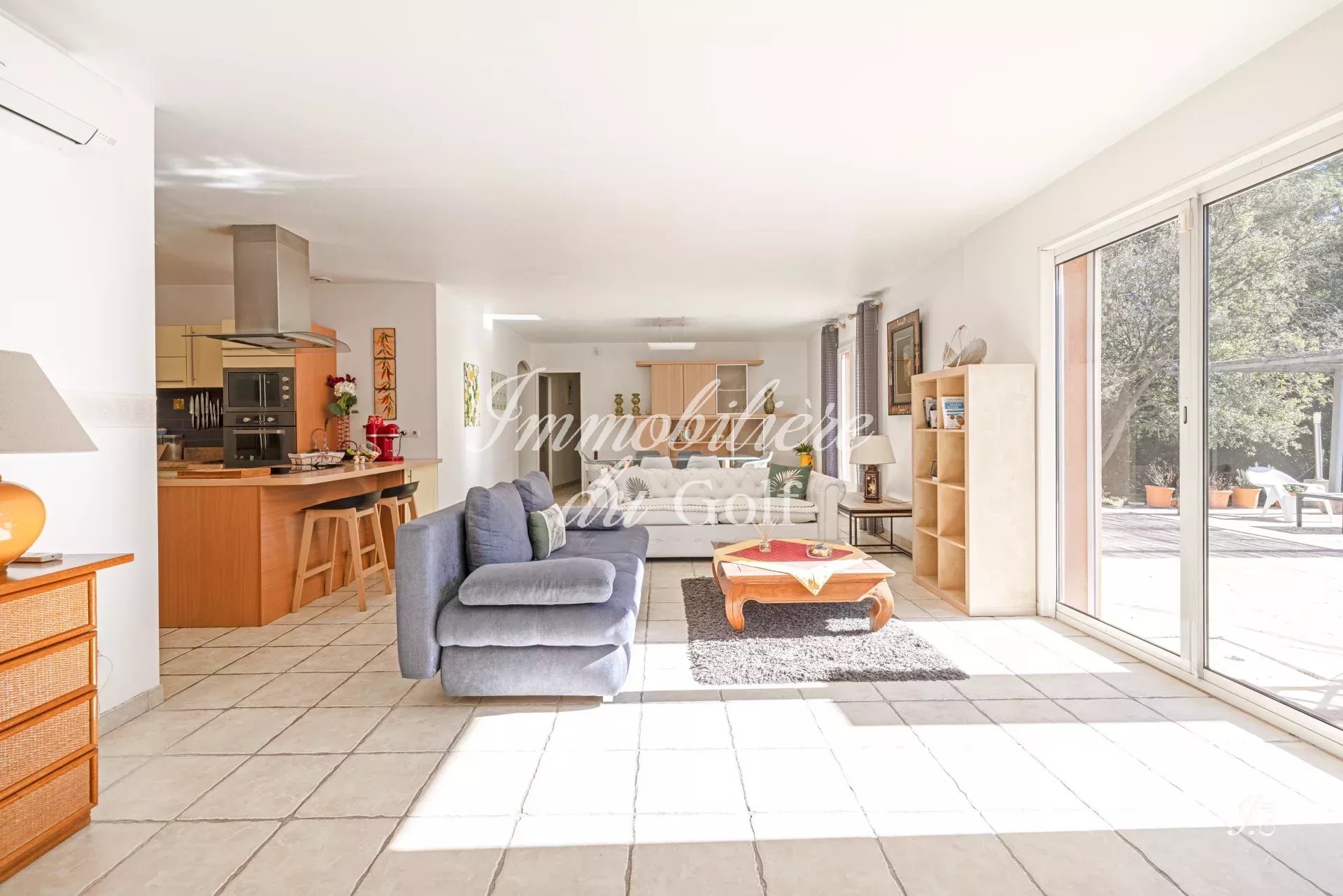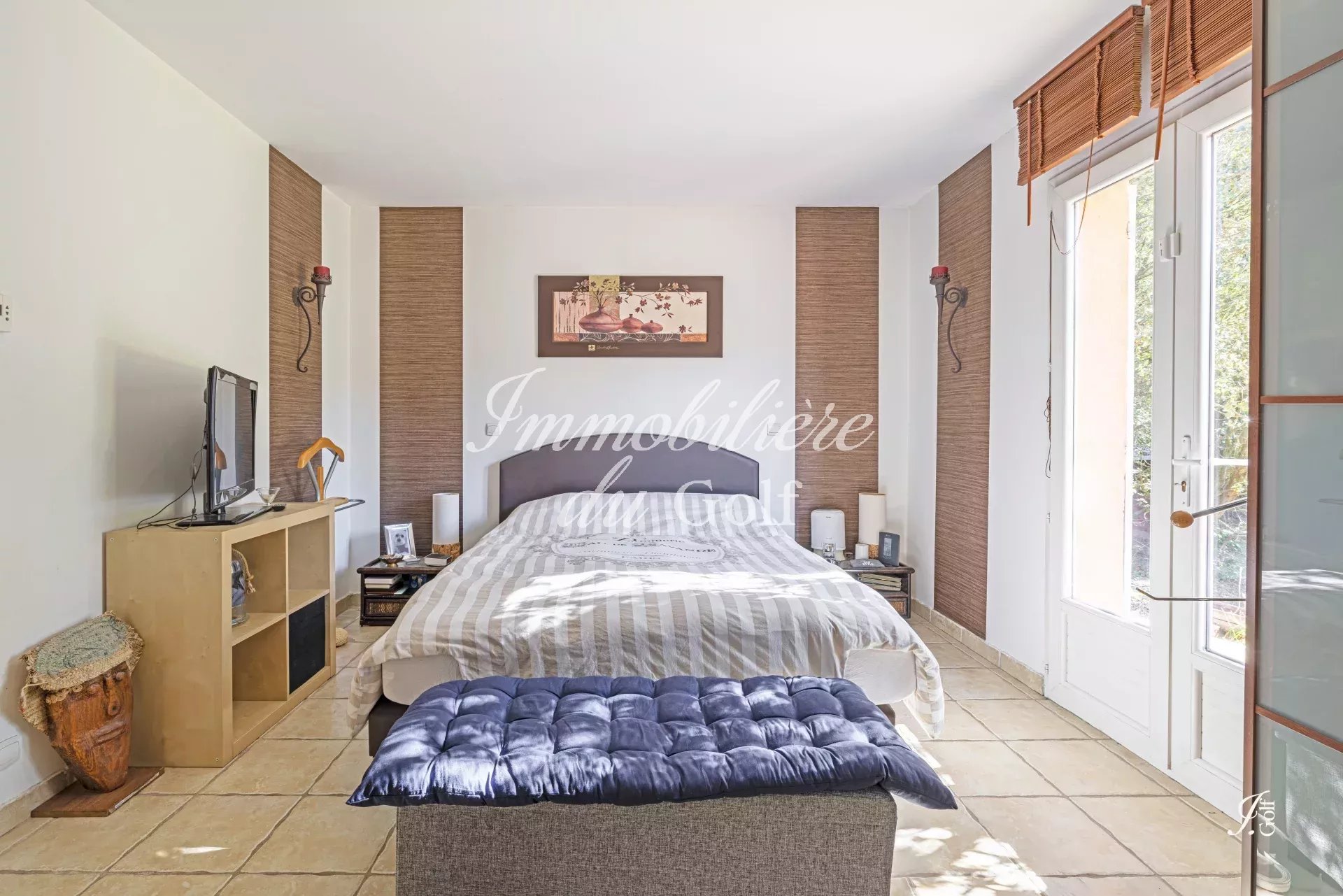 L’Immobilière du Golf vous propose : LE MAS PROVENÇAL, une élégante villa T5 de 140m² (dont un garage aménagé d’environ 20m²), idéalement située dans un quartier prisé de Brignoles. Érigée sur un vaste terrain paysager de 3 800m², cette propriété offre un véritable havre de paix. Dès l’entrée, vous serez séduits par un spacieux séjour de plus de 40m², baigné de lumière grâce à ses larges baies vitrées, offrant une vue dégagée sur l’extérieur. La cuisine ouverte, entièrement équipée, s’intègre harmonieusement à cet espace convivial, parfait pour partager des moments en famille ou entre amis. Le coin nuit se compose de trois chambres confortables se partageant une salle de bain fonctionnelle. Une suite parentale de plus de 24m², dotée d’un dressing et d’une salle d’eau privative, vient compléter l’ensemble, apportant raffinement et intimité. À l’extérieur, le jardin arboré et la piscine constituent un écrin de détente, idéal pour profiter du doux climat provençal. La propriété est également sécurisée grâce à un système d’alarme, un portail électrique avec visiophone, dispose d’un garage aménagé et des possibilités d’aménagement supplémentaires selon vos besoins. Ne manquez pas cette opportunité rare ! Contactez-nous dès aujourd’hui pour une visite.