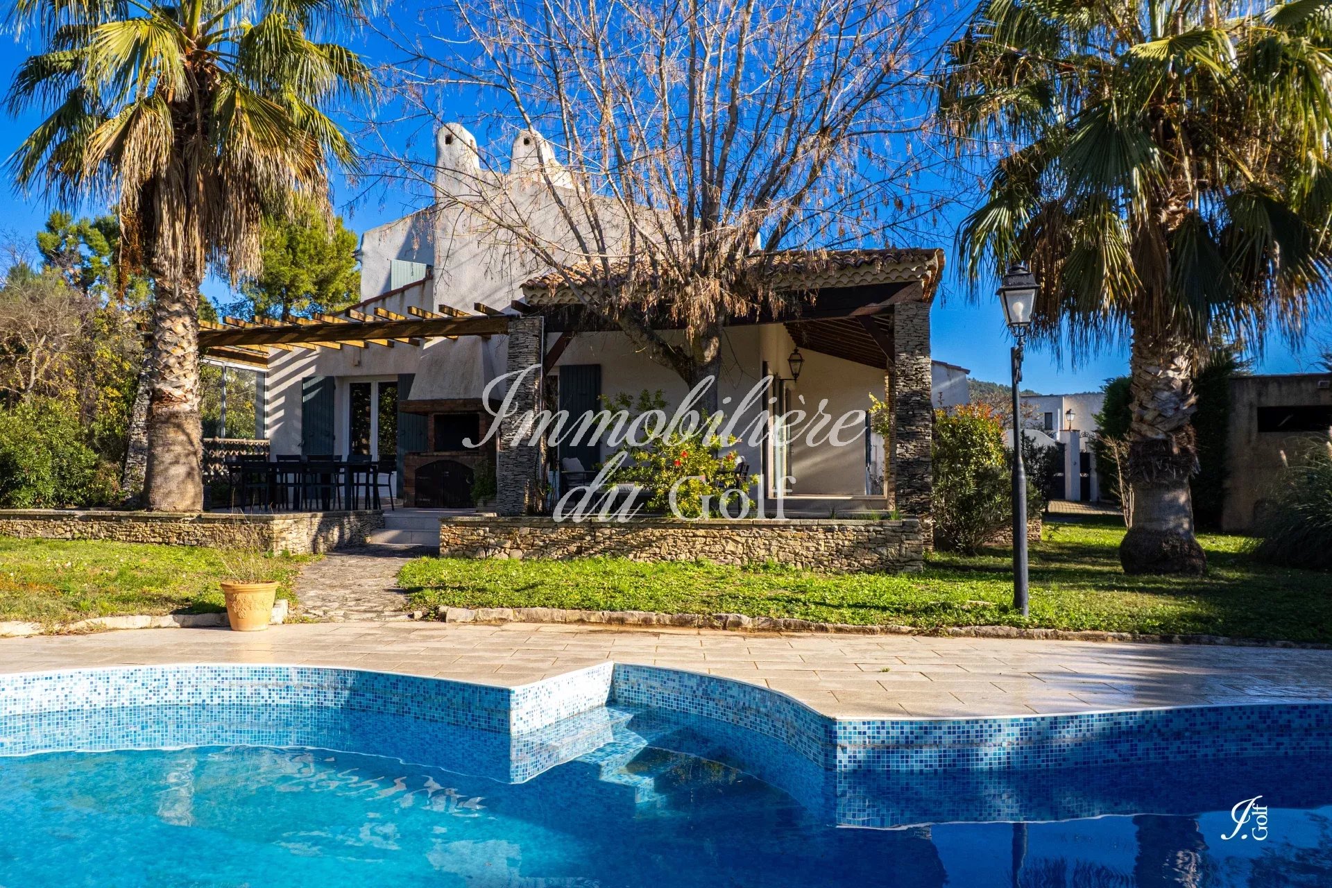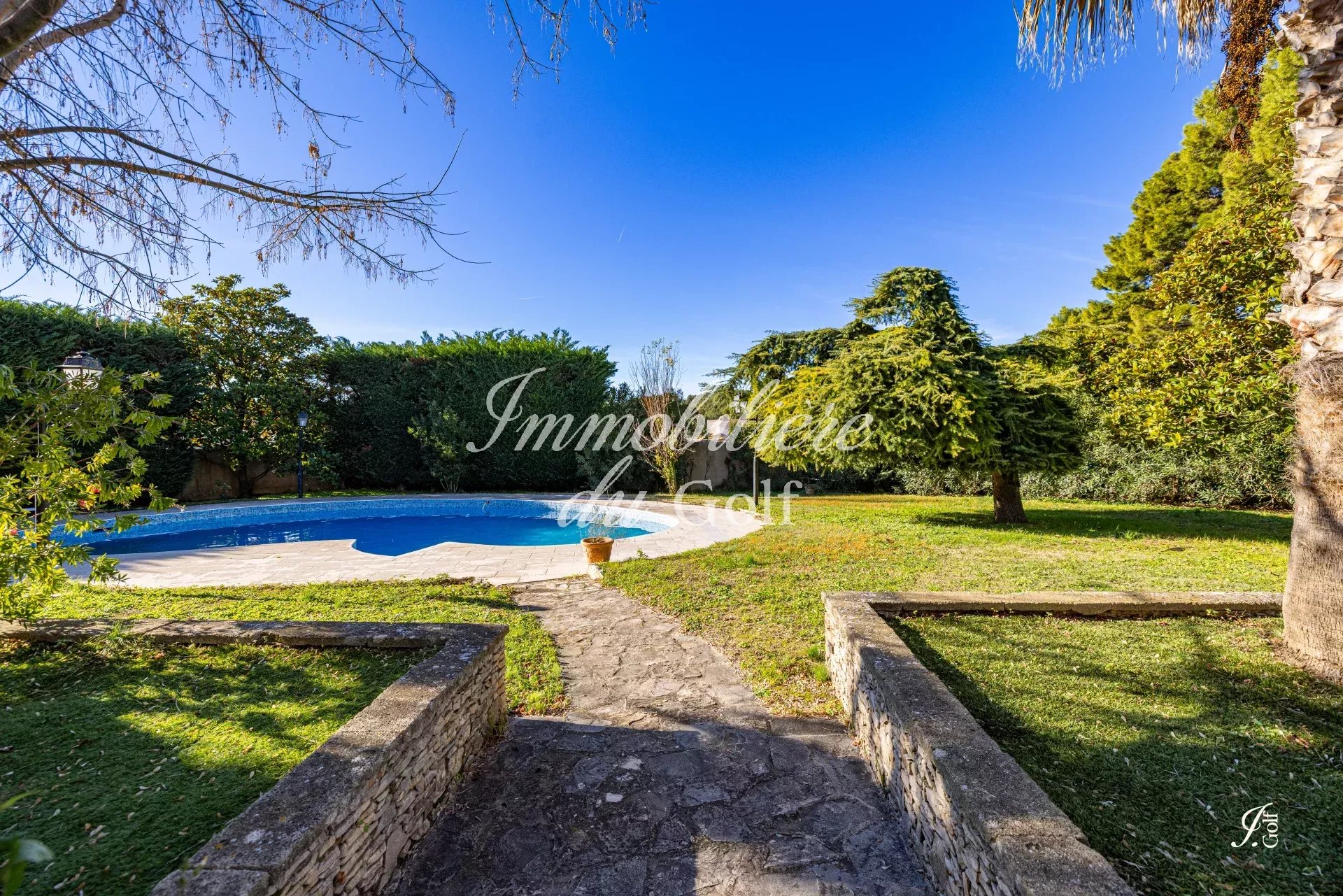 L’Immobilière du Golf vous présente : LA SERENITY, une élégante villa T5 de 215m², édifiée sur un superbe terrain arboré de 1 780 m², dans un cadre verdoyant et intimiste. Idéalement située, cette propriété séduit par ses volumes généreux, ses prestations soignées et son agréable espace extérieur agrémenté d’une belle piscine. Dès l’entrée, vous serez charmé par un vaste séjour/salle à manger baigné de lumière, ouvert sur le jardin grâce à de larges baies vitrées. Une cuisine équipée, pensée pour allier esthétisme et fonctionnalité, complète harmonieusement cette pièce de vie. La partie nuit se compose d’une superbe suite parentale avec salle d’eau et dressing, offrant confort et intimité, ainsi que de trois chambres supplémentaires, dont une à l’étage, toutes bénéficiant de beaux volumes et d’un calme appréciable. Une salle de bains et des toilettes viennent compléter ce niveau. À l’extérieur, le jardin paysager constitue un véritable atout pour cette charmante propriété, alliant nature et sérénité. Une très jolie piscine vient parfaire les lieux. Ce bien dispose également d’un appartement T2 indépendant, parfaitement entretenu, comprenant un salon, une cuisine, une chambre et une salle de bains — idéal pour recevoir, louer ou accueillir un proche en toute autonomie. Pour votre sécurité, la maison est équipée d’un système d’alarme ainsi que d’un portail électrique.