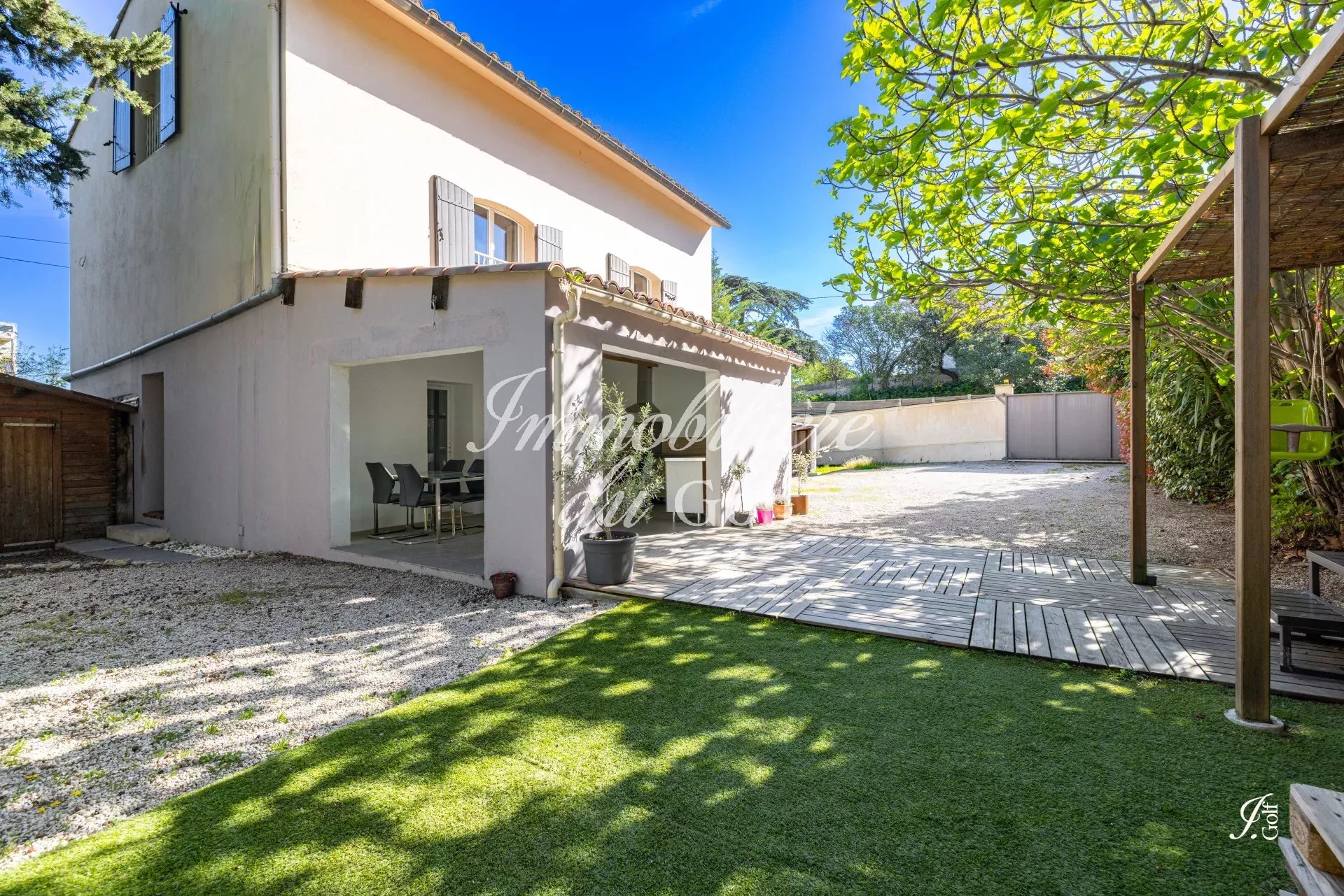 L’Immobilière du Golf vous propose : LA MAISON ATELIER, une maison T4 de 230m², édifiée sur un terrain de 407m², située dans le 11ᵉ arrondissement de Marseille. Élevée sur trois niveaux, elle offre des volumes généreux et une organisation fonctionnelle. L’entrée principale dessert un escalier menant à un salon / salle à manger avec cuisine ouverte, suivi d’une première chambre avec vue sur le jardin et son figuier, d’une salle d’eau et un wc séparé. À l’étage, vous trouverez deux chambres supplémentaires, dont une avec salle de bain privative, ainsi qu’un palier pouvant servir de bureau. En rez-de-jardin, un local commercial indépendant avec entrée privative et porte blindée présente de nombreuses possibilités : activité professionnelle ou rendement locatif. Il comprend une chambre, un dressing et une salle de bain. À l’extérieur, le jardin se vit comme une véritable pièce à part entière : cuisine d’été, coin détente convivial, cabane et stationnement généreux viennent compléter ce cadre agréable et familial. Entièrement équipée de la climatisation réversible, il bénéficie d'un confort optimal en toute saison. Son agencement, avec un espace indépendant en rez-de-jardin, en fait un bien à double usage, idéal pour concilier vie professionnelle et personnelle en toute sérénité.